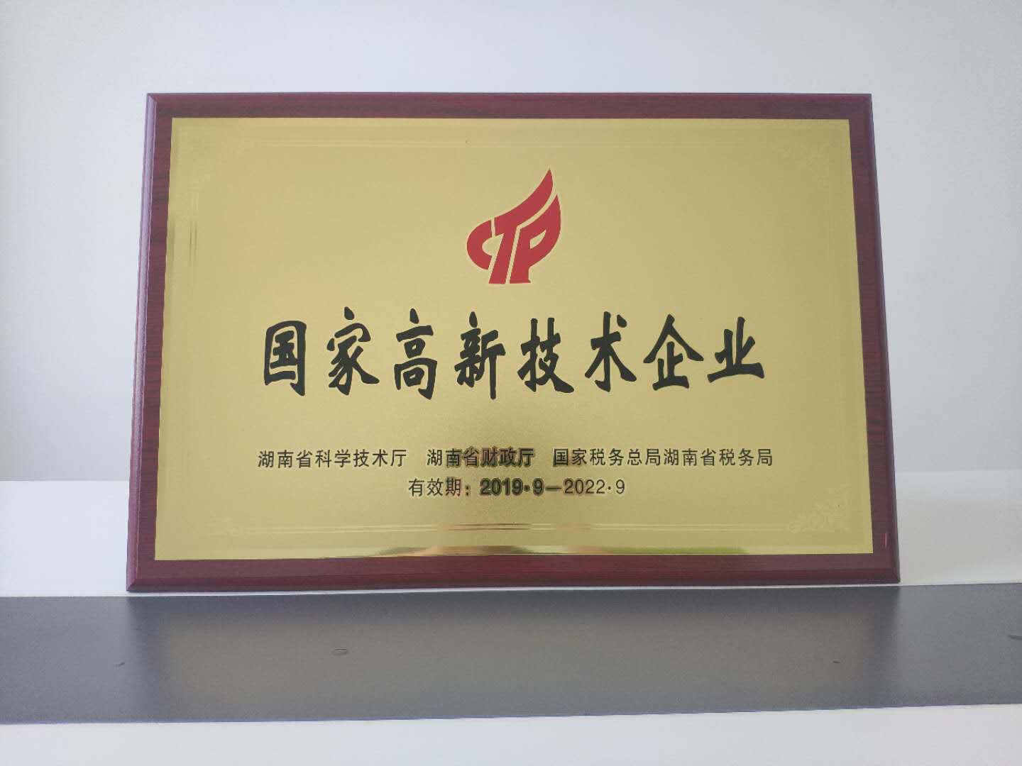 2020年04月27日上午,湖南省湘潭市科技局、縣科工局,來(lái)到公司頒發(fā)高新技術(shù)企業(yè)牌匾。副總經(jīng)理?xiàng)盍傁壬砉靖吲d地接過(guò)牌匾,并表達(dá)了對(duì)市、縣科技工業(yè)部門(mén)熱情周到服務(wù)的感謝。