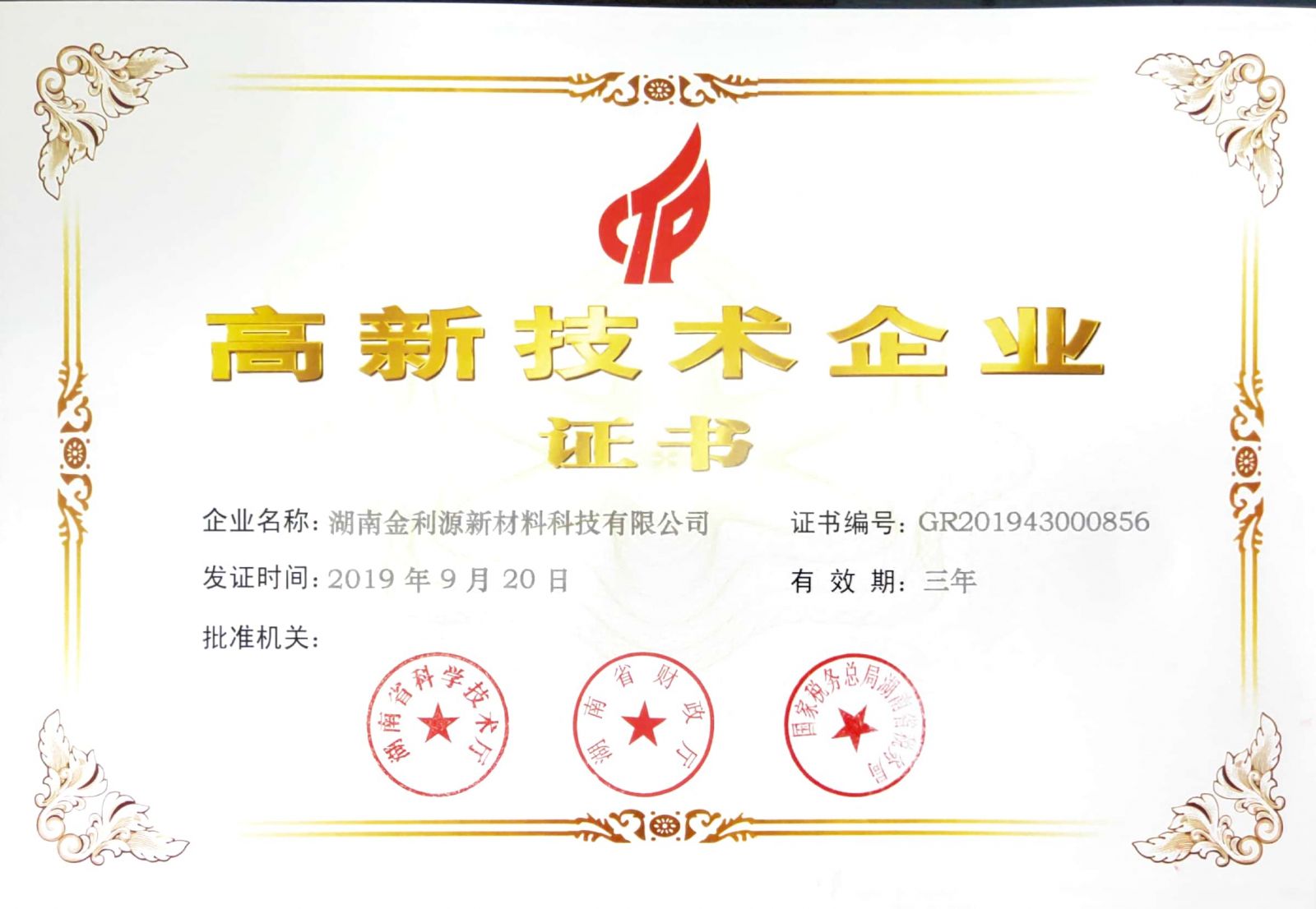 2019年,湘潭市科技部門(mén)積極組織全市企業(yè)申報(bào)國(guó)家高新技術(shù)企業(yè),向省科技廳推薦195家企業(yè)申報(bào)高新技術(shù)企業(yè)。其中,第一批認(rèn)定56家;第二批組織認(rèn)定65家。湖南金利源新材料科技有限公公司榮膺第二批國(guó)家高新技術(shù)企業(yè)。